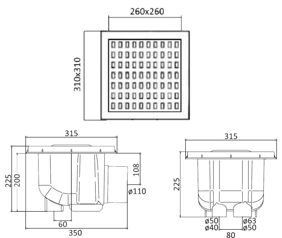 • Exterior size 310 x 310 h 230mm, ABS grille 260x260 mm.