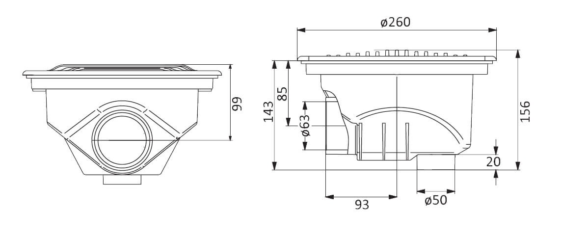 • Wide size (195 mm) to support underwater inflator and decreased height (140 mm) for floor slit.