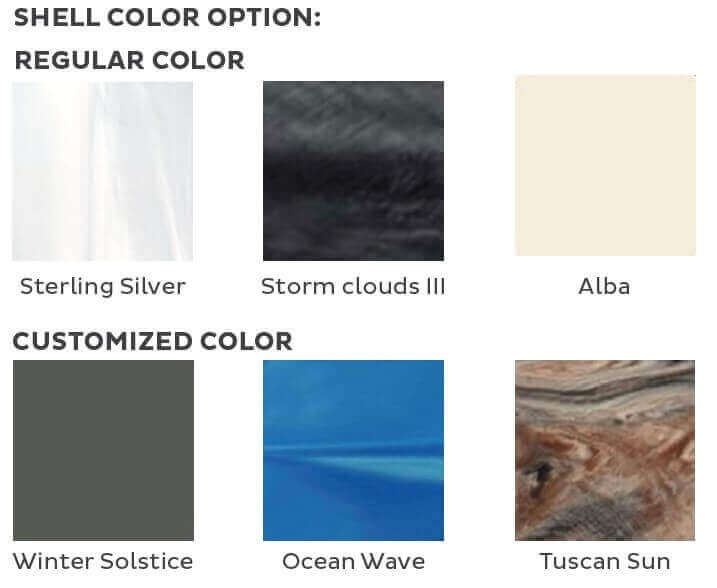 • Customized shell colors - Winter Solstice, Ocean Wave, Tuscan Sun