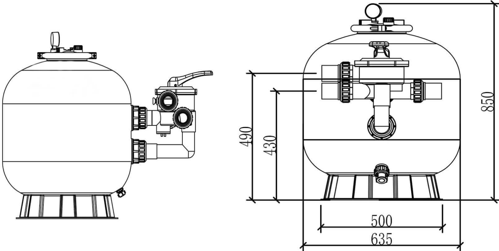 Brand: AstralPool,Voltage, V: 690,Power consumption, kW: 0.95,Flow rate, m3/h: 14 Category: Aqua Industrial Bobbin-Wound side mounted sand filter 650 mm, 16 m3/h