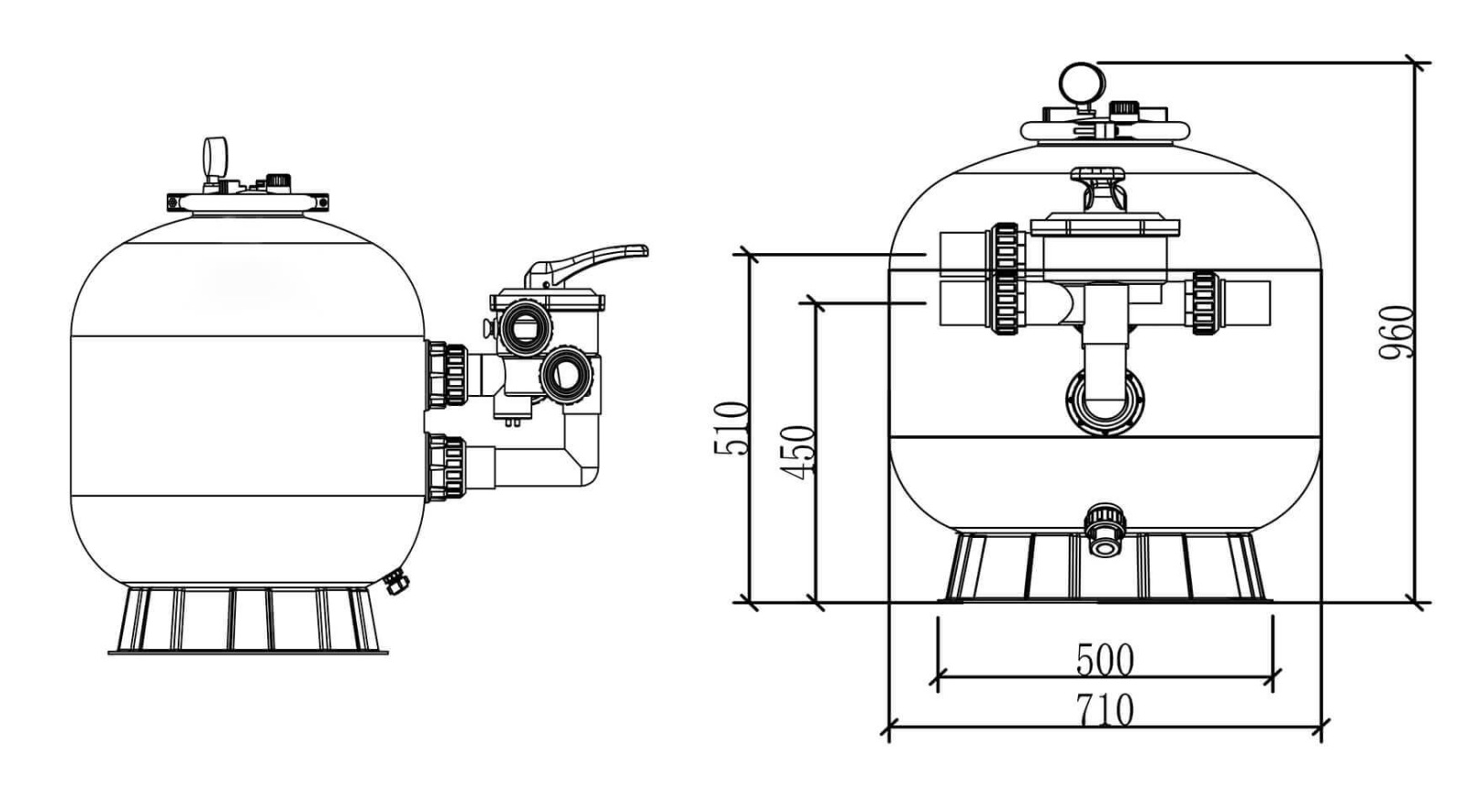 Brand: Aqua Industrial Group,Pool type: concrete Category: Aqua Industrial Bobbin-Wound side mounted sand filter 700 mm, 19 m3/h