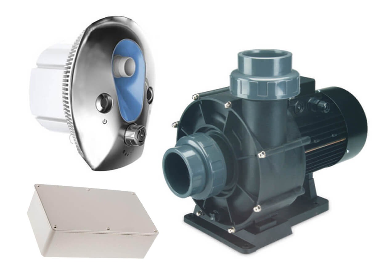 Brand: AstralPool,Material: Aluminum,Foot washer: yes,Hot/cold mixer : yes Category: Aqua Industrial countercurrent system for pool 2.2 kW 50 m3/h 380 V, concrete/liner, stainless steel