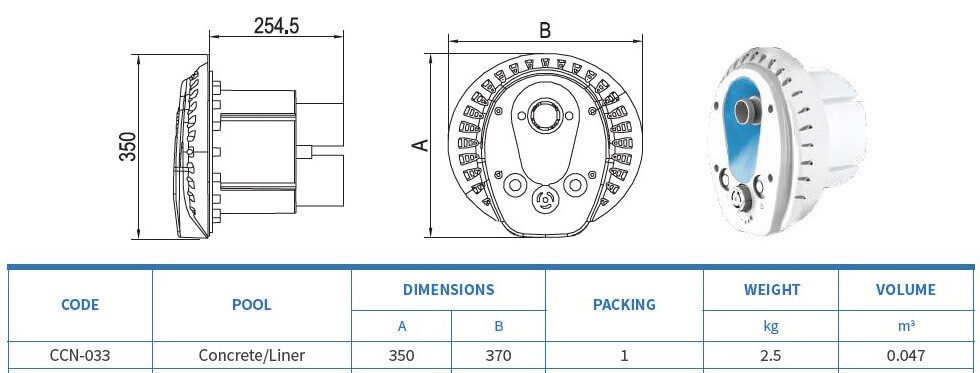• ABS rustproof nozzles are completely unchanged by UV and aggressive chemicals typically found in swimming pools