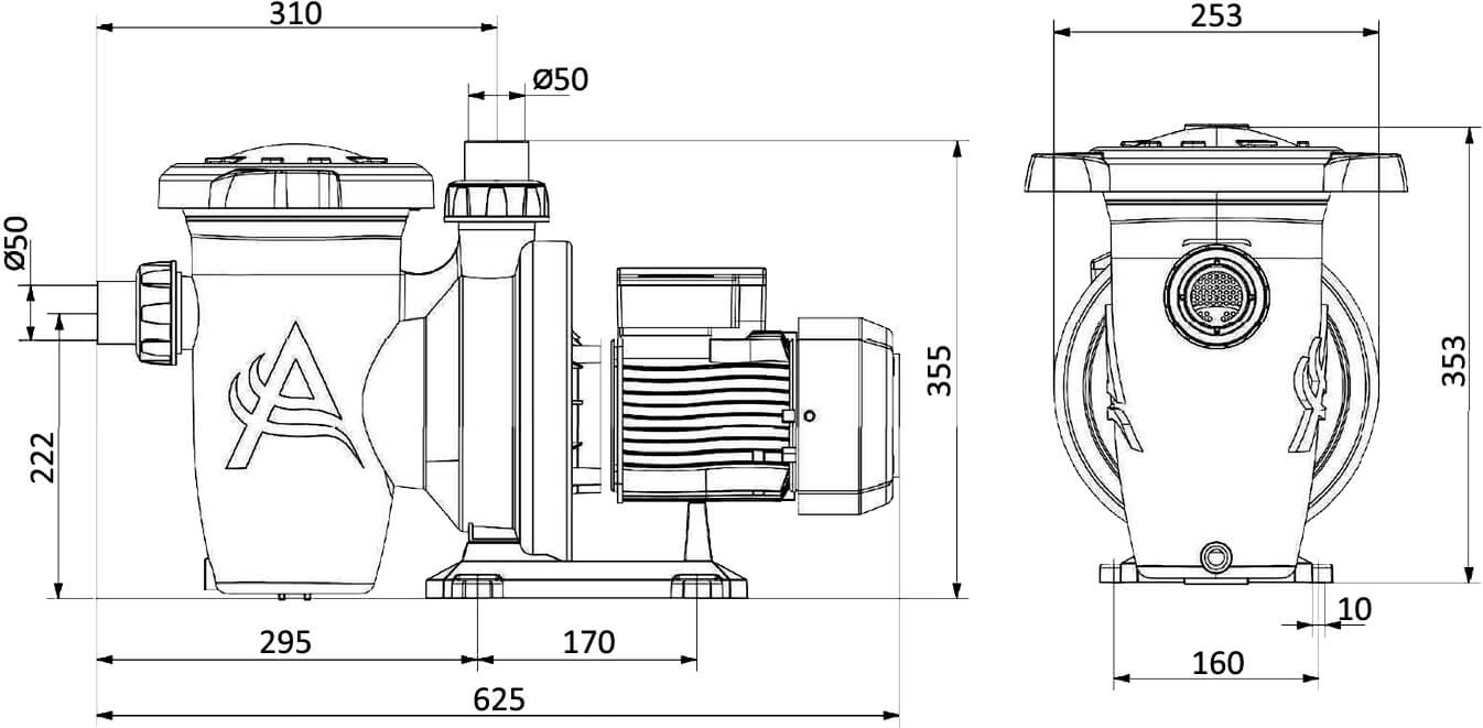 Brand: AstralPool,Flow rate, m3/h: 14,Valve type: top mounted Category: Aqua Industrial LIPARI 75T 15 m3/h pump for the swimming pool, 0.75 HP