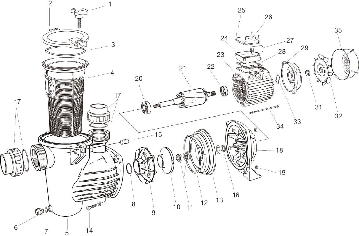 Brand: Hayward,Voltage, V: 230,Power consumption, kW: 9.5,Flow rate, m3/h: 16.5 Category: Aqua Industrial OPTIMA-25T 6 m3/h pump for the swimming pool, 0.25HP
