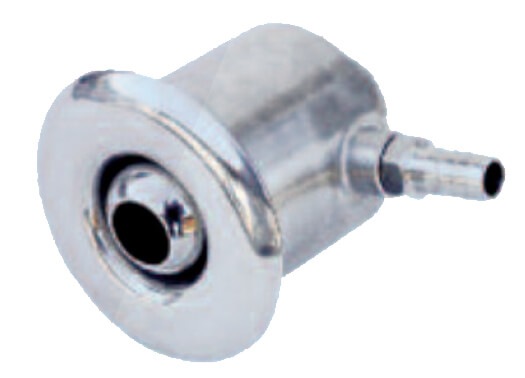 The nozzle has an outlet for air suction, thus, by purchasing (in addition to the nozzle) the regulator for the hydromassage nozzle, it is possible to regulate the air supply, or to cut off the air access to the water flow.