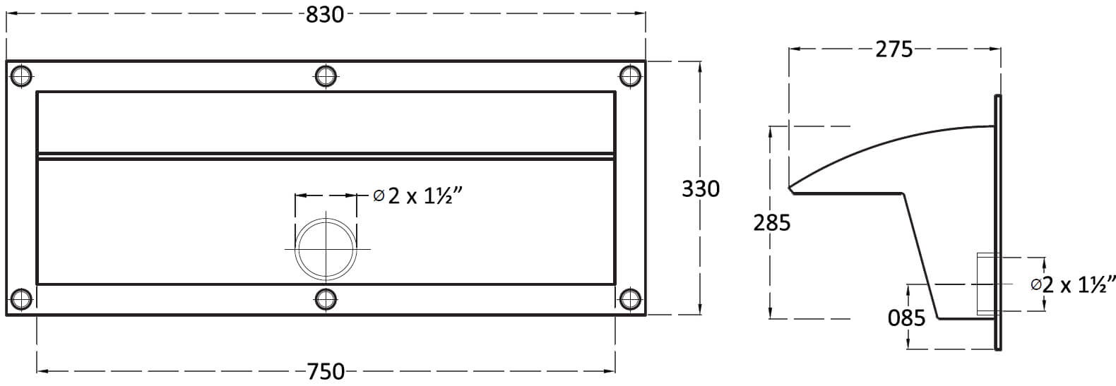 • The connection is 2 x 1½ inches.