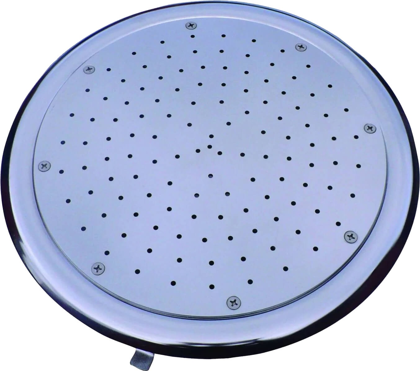 Round pool hydromassage plate, 340 mm in diameter, made of stainless steel, used to create the effect of hydro and aero massage in swimming pools and spas.