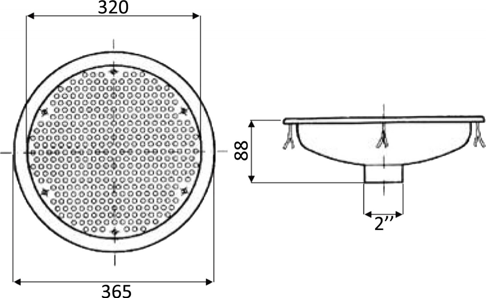 AtecPool spa main drain for concrete and prefabricated pool, 2 AtecPool spa main drain for concrete and prefabricated pool, 2", ABS