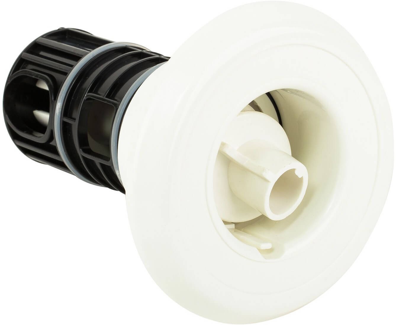 Pool hydromassage nozzle for water and air supply.