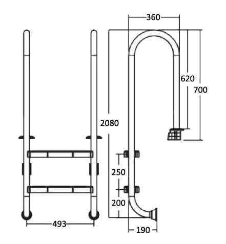 AtecPool stainless-steel asymmetrical ladder for inground pools, 2 steps, AISI-316 AtecPool stainless-steel asymmetrical ladder for inground pools, 2 steps, AISI-316