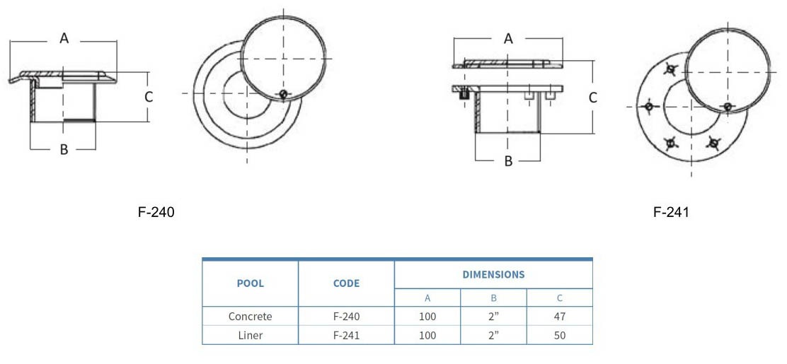 Aqua Industrial ABS return wall inlet for concrete pools Aqua Industrial ABS return wall inlet for concrete pools