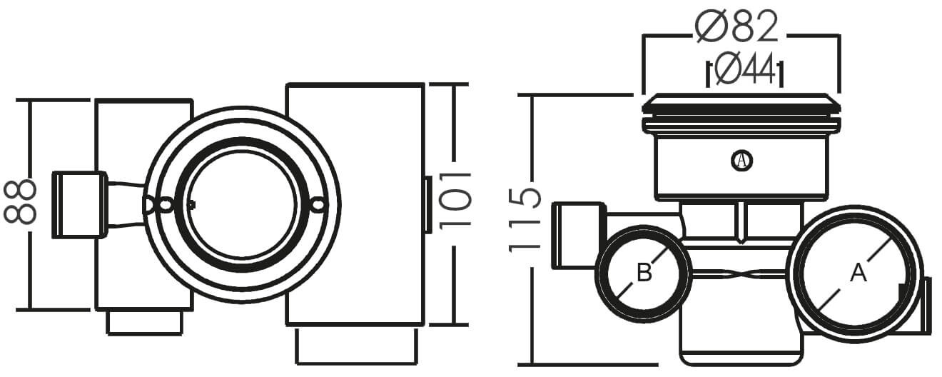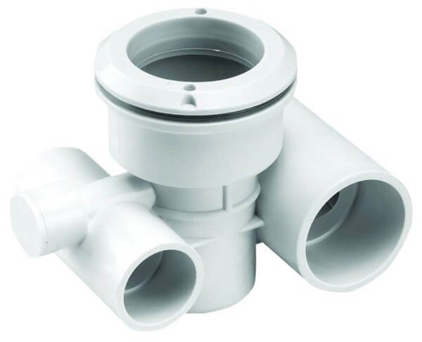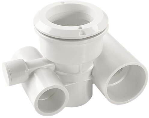 The body has holes for both water flow 50 mm and air 32mm air supply. It is made of durable white plastic.