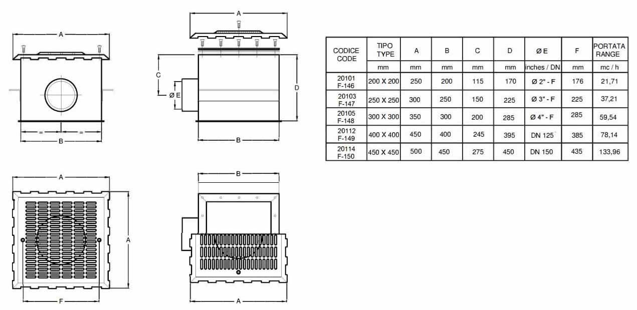 Type: Pool brushes,Brand: Aqua Industrial Group Category: Aqua Industrial stainless steel 316L main drain for concrete pools, 500x500 mm