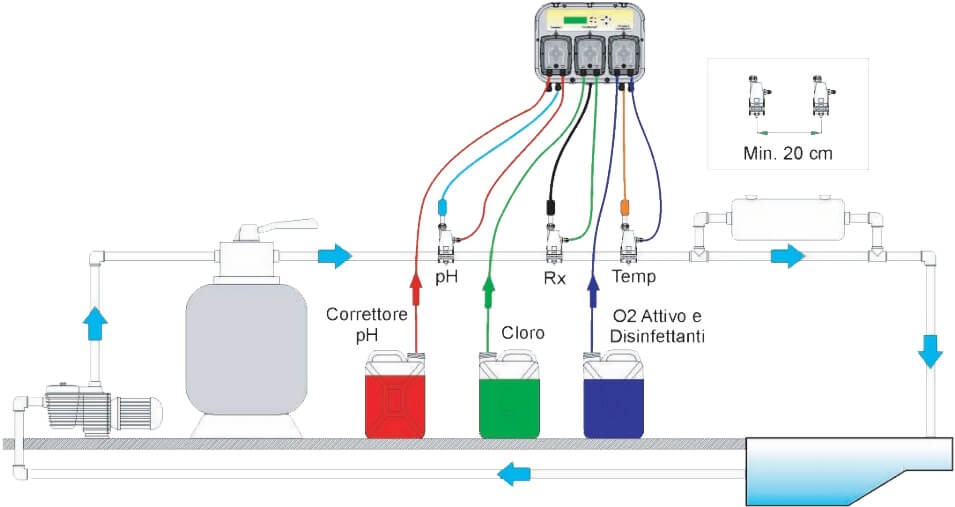Aqua Technopool 3 Ph-Rx-Timer is designed for dosing with RX and pH control in pools up to 250 cubic meters.