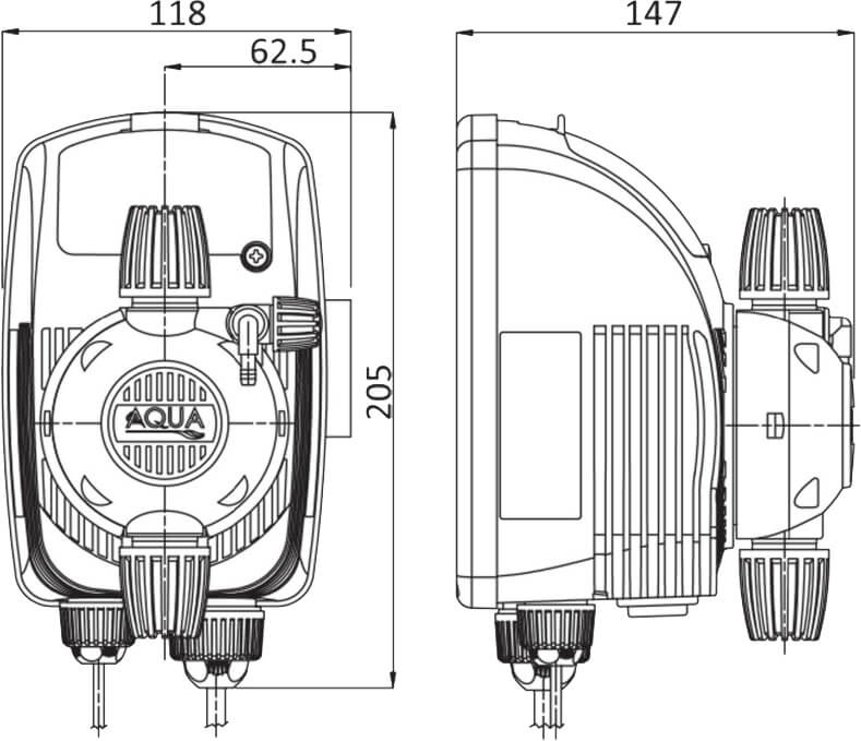 Protective password and control of dosing statistics. Injection rate adjustment with digital display (0-100%).