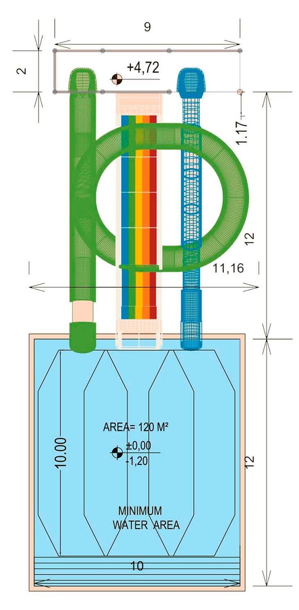 Hotels often choose a complex of slides with one start grounding, but with different heights, in order to reach a large audience.