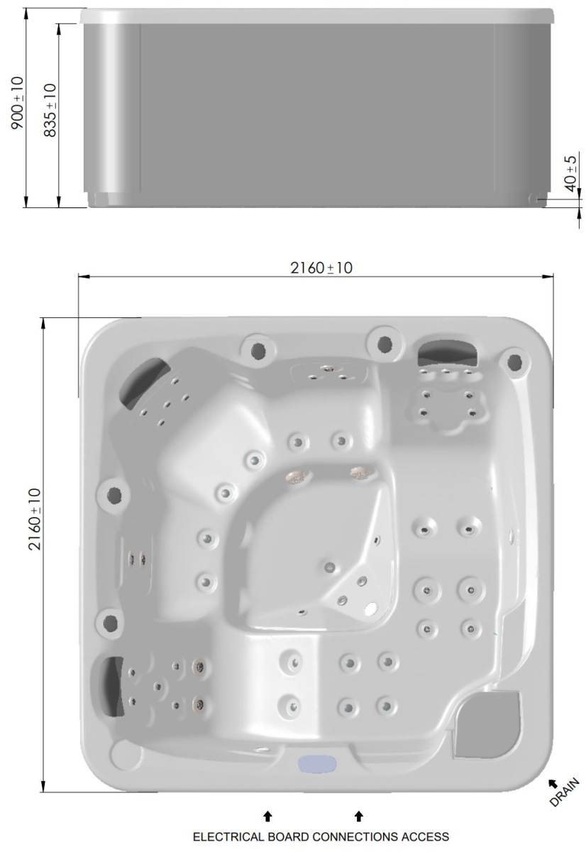 Brand: AstralPool Category: Aquavia Aqualife Line Feel SPA tub with cabinet, 216 x 216 x 90, 5 places