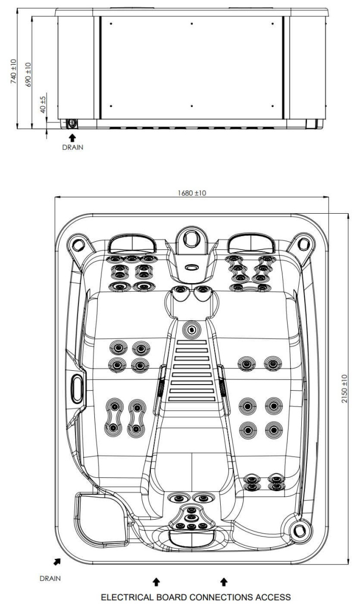 • Low walls, which make it incredibly easy to access. At just 74 cm, the walls of this spa are the lowest in the Aqualife range, allowing it to fit through any standard doorway in your home. This means that you can install it in any room that you choose, without having to worry about whether or not it will fit.