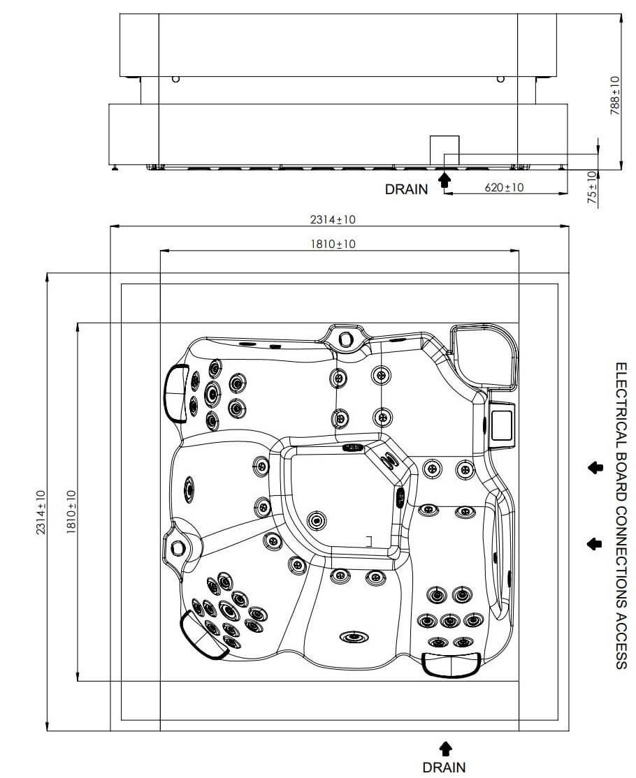 Brand: Whirlcare,Number of Jets: 44,Type: SPA tub Category: Aquavia Exclusive Line Cube Ergo SPA tub 231 x 231 x 78, 5 places