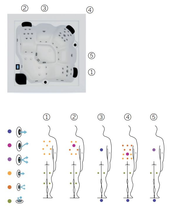 • Ergonomic design. The shape of the tub is carefully designed to support the natural contours of the body, providing a comfortable and therapeutic spa experience. The seats are spacious and comfortable, allowing users to fully relax and enjoy the benefits of the hydromassage circuit.