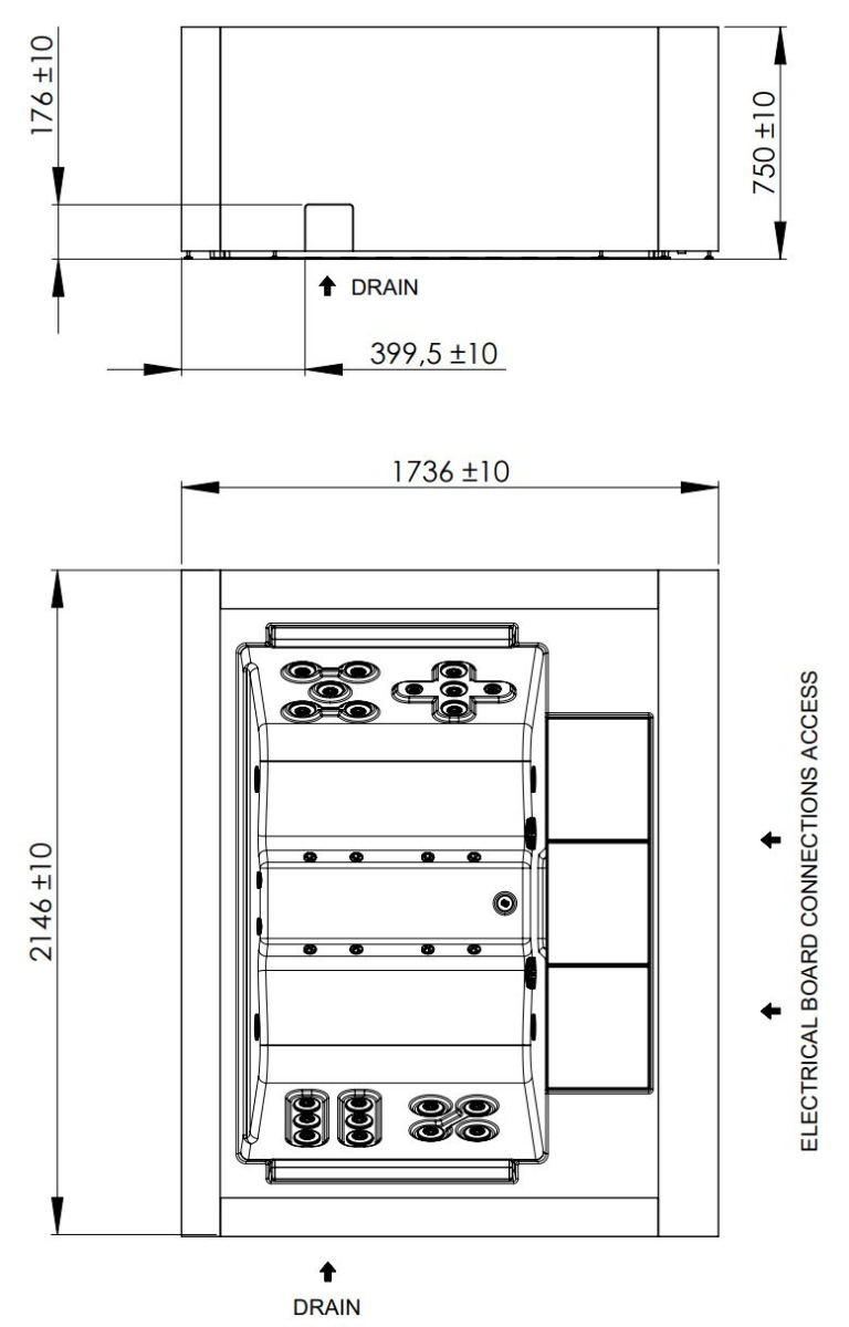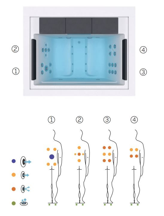 • Compact dimensions that measures 215x174x75, making it an ideal choice for individuals or couples who seek a spa experience while conserving space. Despite its smaller size, this home spa is remarkably versatile, featuring two adjustable lounger-shaped areas that can be positioned in four different angles to suit your preferred relaxation needs.