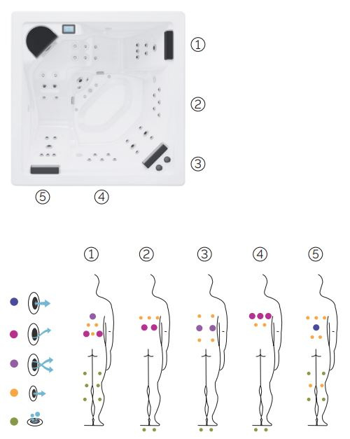 • Despite its compact size, the Lounge City Hot Tub features five different hydromassage positions, allowing users to enjoy a range of massage experiences. Additionally, it boasts 45 massage points, including 31 hydromassage jets and 14 compressed air nozzles, providing a complete and versatile relaxation session.