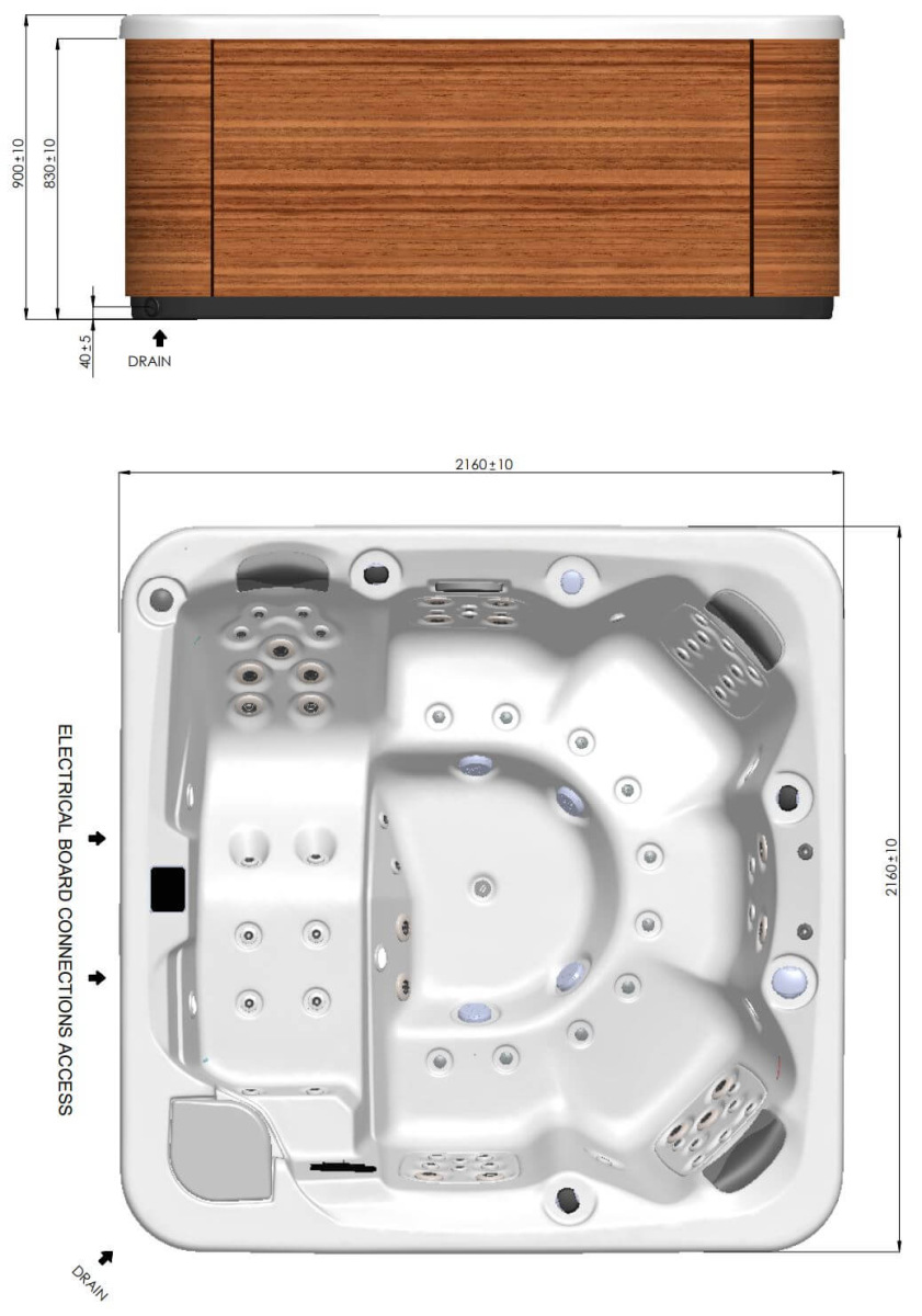 • Cutting-edge, intuitive control panel, which allows for easy operation of the hot tub’s features.