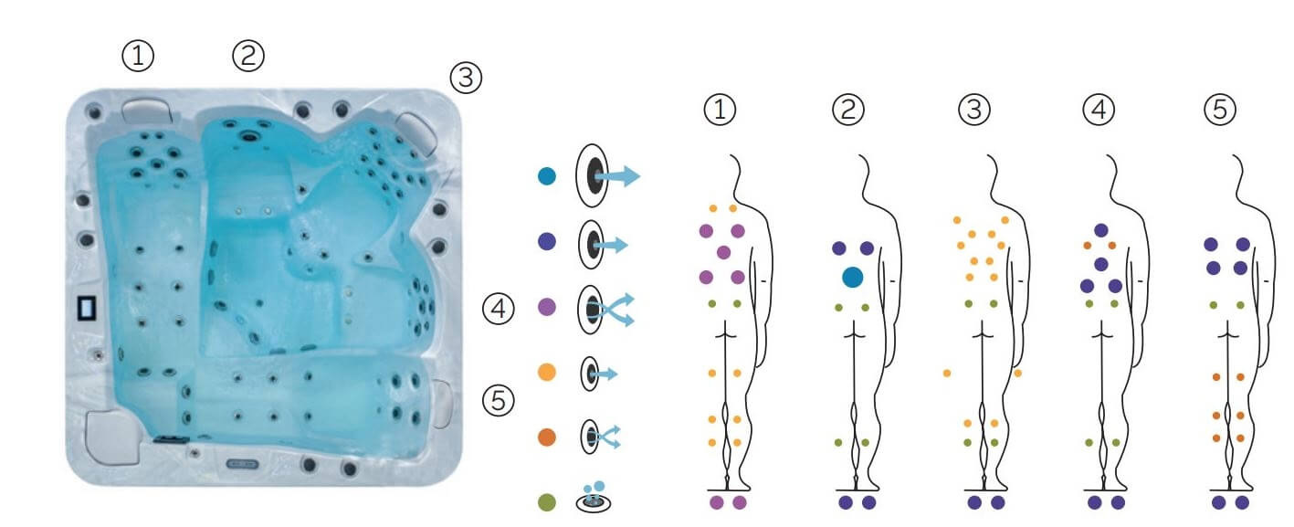 • Advanced massage circuit, which includes 56 hydromassage jets and 16 air nozzles. These adjustable jets can be tailored to target specific muscle groups, providing a deep tissue massage that relieves tension and promotes relaxation. Whether you're dealing with sore muscles, stress, or just need a break from the daily grind, the Velvet spa has the power and versatility to provide the perfect massage experience.