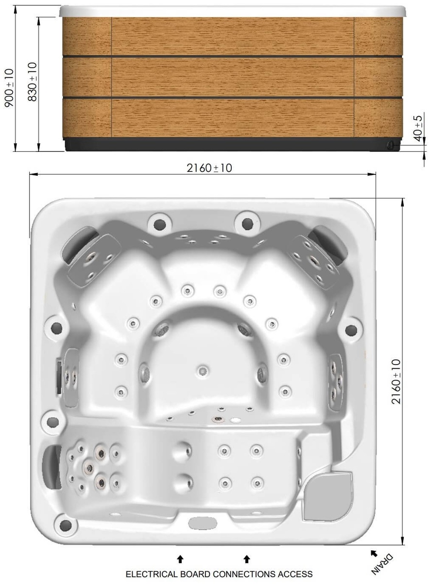 The Astral Pool Baia white SPA is a compact hot tub that measures 216 x 216 x 90 cm and can accommodate up to three people. The hot tub is designed with ergonomics in mind, ensuring that each person has enough space to sit comfortably and relax.