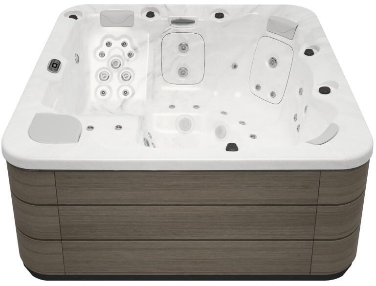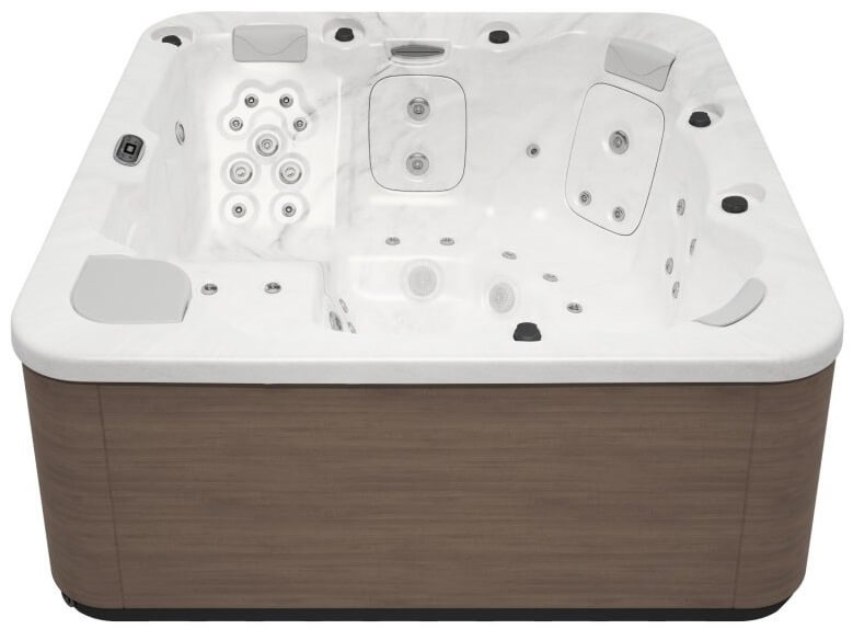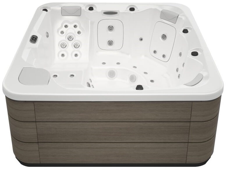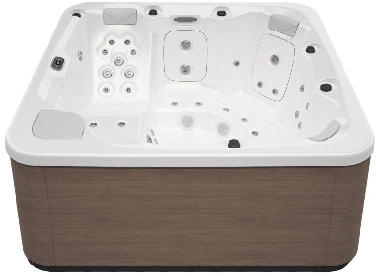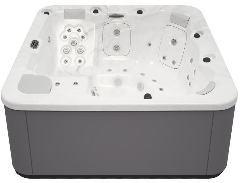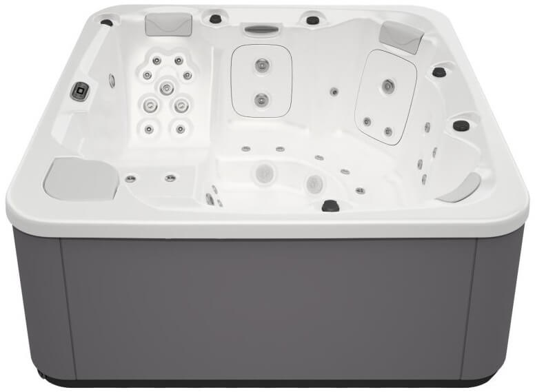 The hot tub features a modern white finish, which makes it a stylish addition to any backyard or outdoor living area. It is constructed with durable materials that are designed to withstand outdoor conditions, ensuring that it will last for many years with proper maintenance.