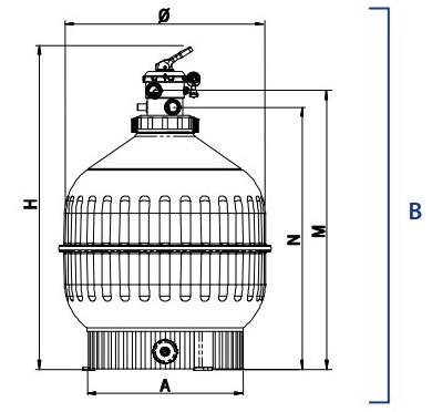 Brand: DAB,Voltage, V: 230,Power consumption, kW: 0.75,Flow rate, m3/h: 21 Category: AstralPool Cantabric filter with top mounted valve 750 mm 21 m3/h, 1 1/2\'\' connection