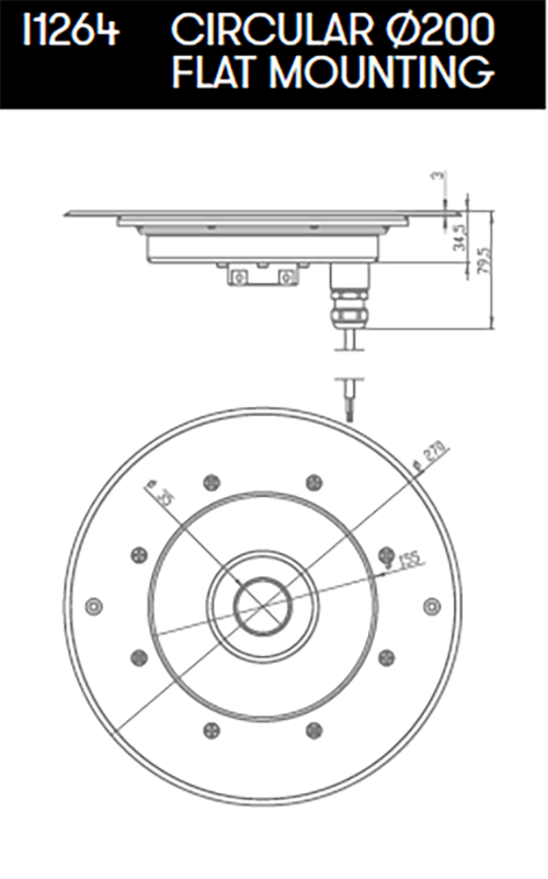 Technical features of Astral Pool Circular flat mounted light for fountains: