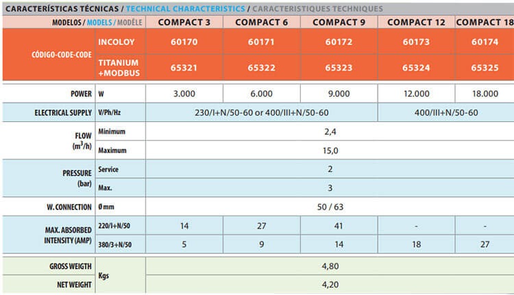 Brand: Atecpool,Color: RGB,Material: Stainless steel,Power, W: 18 Category: AstralPool Compact 12 kW electric pool heater 400 V
