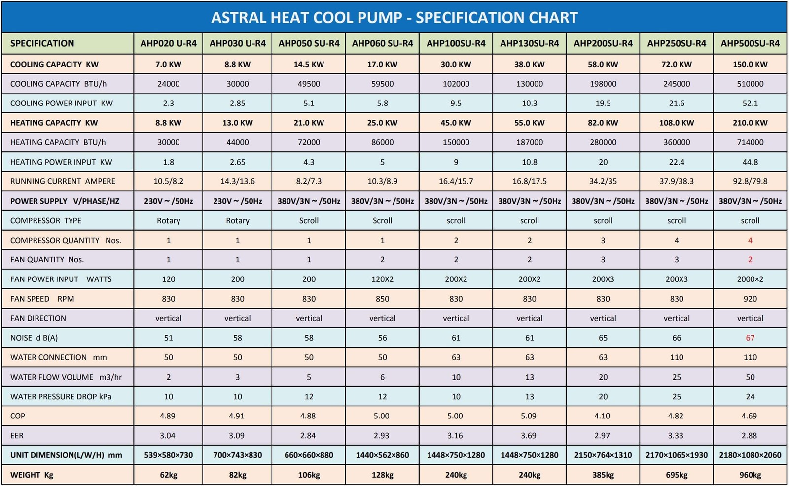 Overall, the Astral Pool Fluidra AHP Series heat pump is a reliable and efficient option for heating swimming pool water. It is designed to be easy to install and maintain, and it offers a range of sizes and heating capacities to meet the needs of a variety of pool owners.