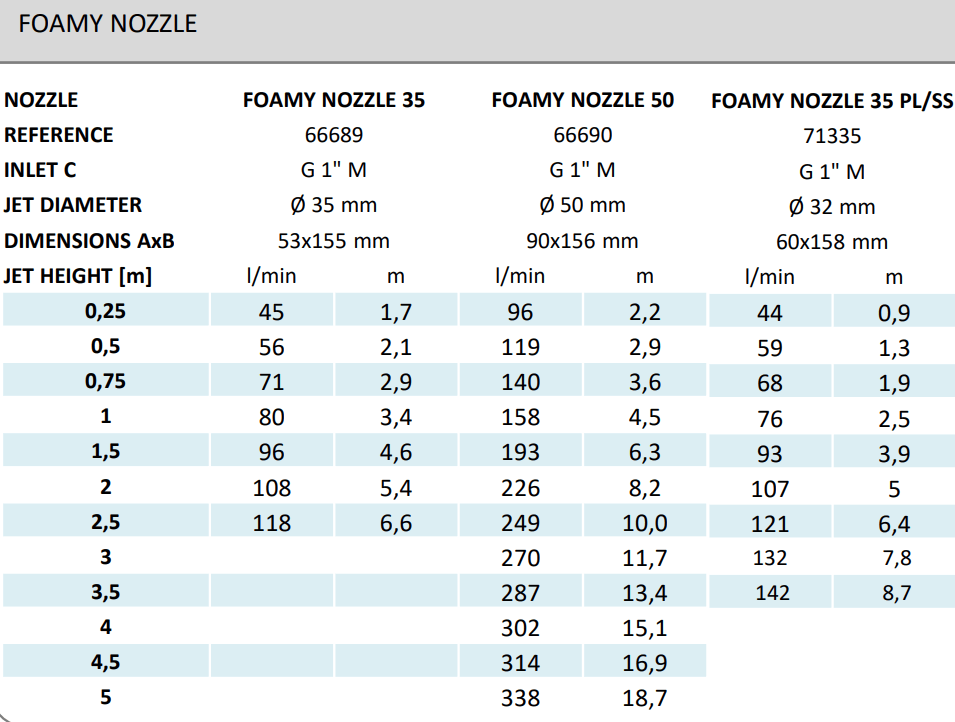 Technical Features of Astral Pool Foamy Nozzle for fountains: