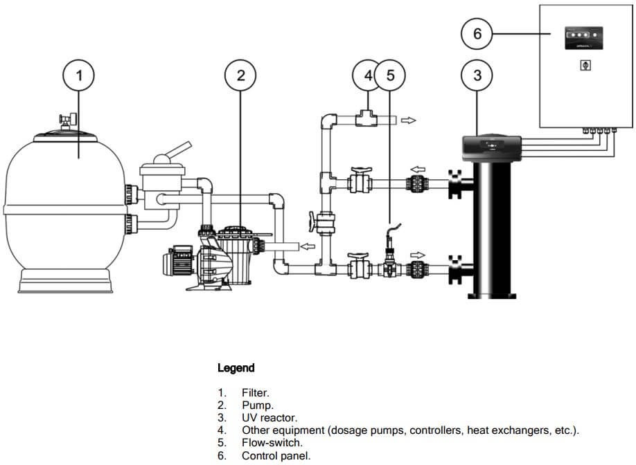 Heliox UV LP+ PE (Polyethylene) UV disinfection is a method of using ultraviolet light to disinfect swimming pool water. This process uses UV-C light to kill microorganisms such as bacteria, viruses, and algae that may be present in the water.