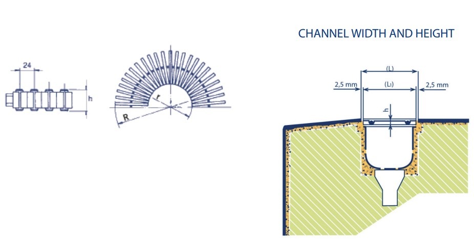 • It is essential to create the overflow channel 5 mm larger than the grating in order to facilitate adaptation and prevent potential dilations.