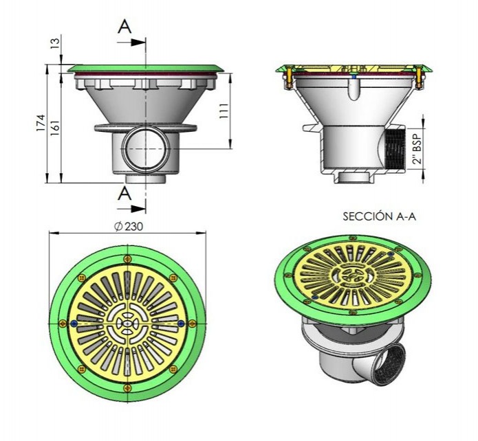 The main drain serves to empty the pool bowl from the water. Also, main drain allows you to start the circulation of water in the pool, when the water level has not yet reached the skimmer (intake water device).