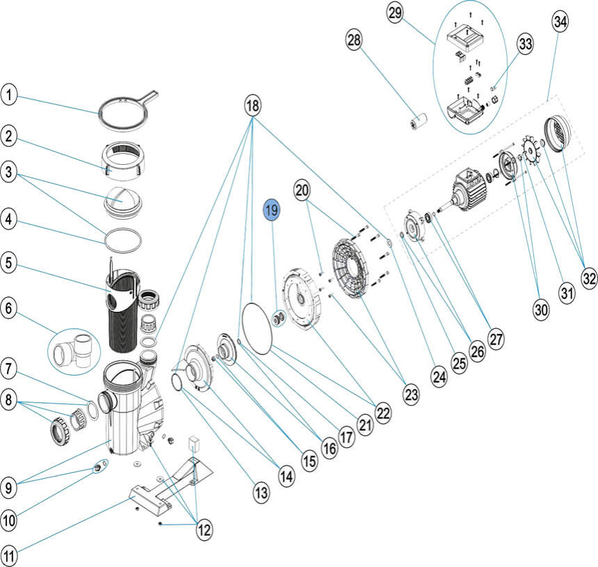 Type: Motor flange, cover, bearings, ties,Brand: AstralPool Category: AstralPool mechanical seal