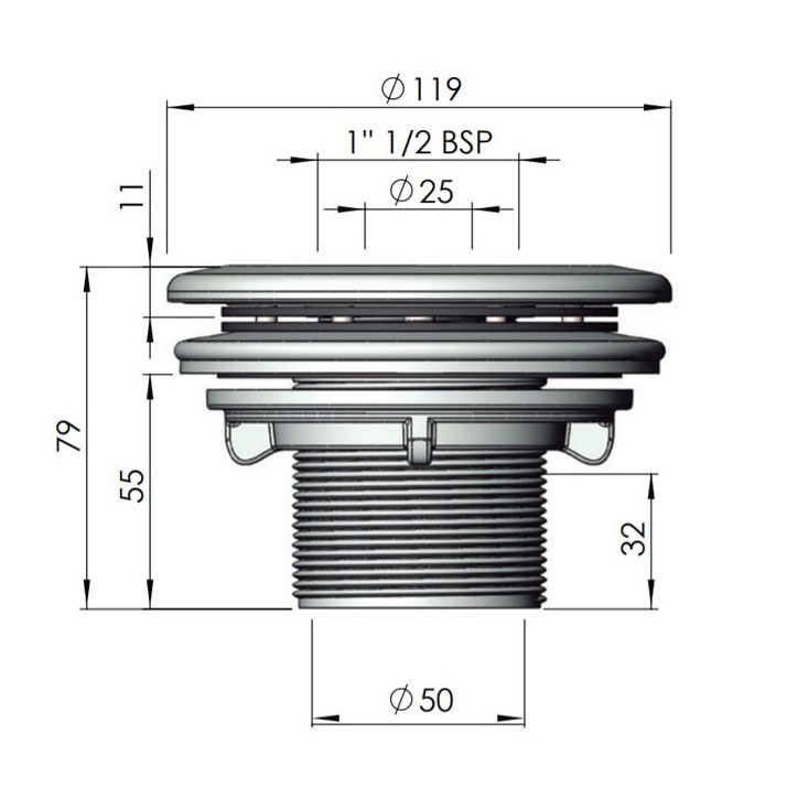 Brand: Behncke,Inlet type: vacuum,Material: Stainless steel Category: AstralPool Multiflow threaded return inlet for liner pools, 50 mm, Light Grey