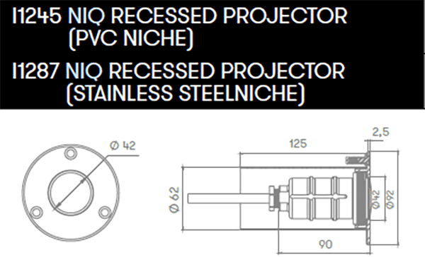 Technical Information of Astral Pool NIQ Recessed Projector: