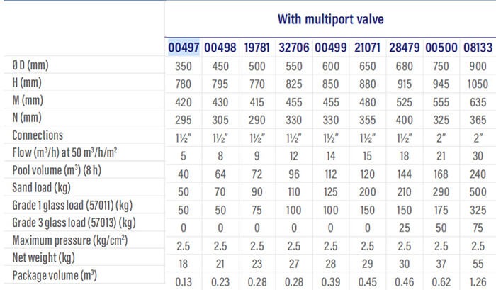 Product weighs up to 37 kg, with a height of 945 mm. The product is an excellent version of the current filters with a sand capacity of 290 kg.