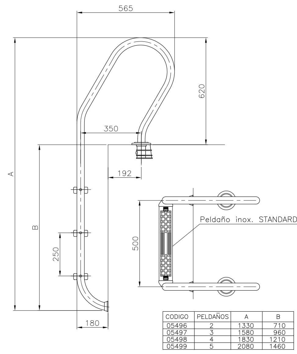 Type: Pool brushes,Brand: Aqua Industrial Group Category: AstralPool Mixed stainless steel ladder for inground pools, 3 steps, AISI-304L