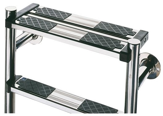 This mixed handrail ladder has a luxurious model step and equipped with mounting for connection to an equipotential output. The stair has a non-slip feature ensuring safety and design avoids the possibility of slipping or cutting.