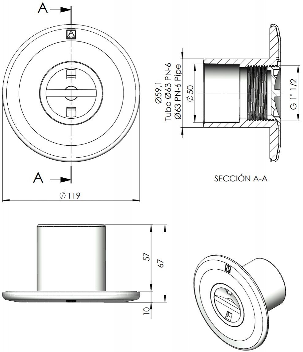 The Astral Pool suction nozzle is a high-quality inlet designed to be glued to piping with a diameter of either 63 mm or 50 mm. The suction nozzle is made of durable ABS material that ensures long-lasting performance and reliability.
