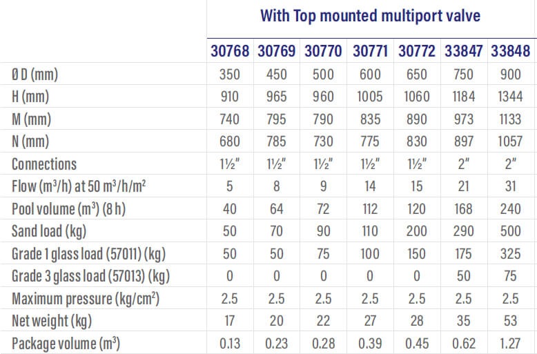 Product weighs up to 53 kg, with a height of 1344 mm. The product is an excellent version of the current filters with a sand capacity of 500 kg.