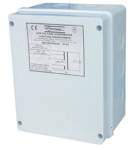 This transformer box is dust and waterproof which is good as pool transformers are installed near pool area and can be in contact with Water.