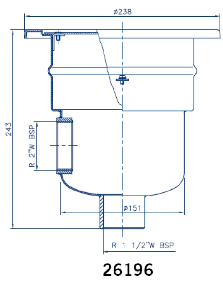 Brand: Aqua Industrial Group Category: AstralPool round main drain for concrete pool, 2" side and 1.5" base, AISI – 316L