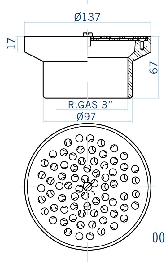 • Manufactured with chrome-plated brass body and grille in AISI-316L stainless steel
